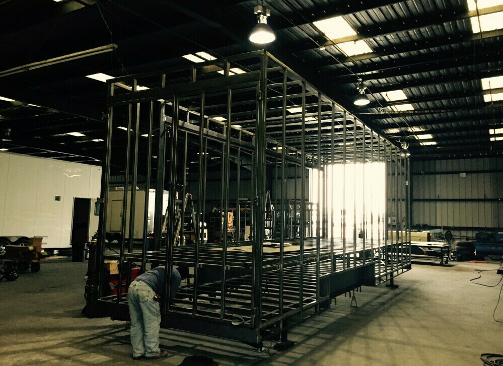 "COOP" was my "Perfect Truck" - designed by 21 Lakes from the ground up. I wanted to build a truck that you could pull with a small PickUp, but I didnt want one of the "horse trailers" that are becoming common. So we built Coop 32' long with a full 24' Expanding Side, 12' Tall and with Belly Bays for storage. It had all the pop of any of the large semis, but we could bypass scales, avoid weight classifications, and still handle the large jobs.